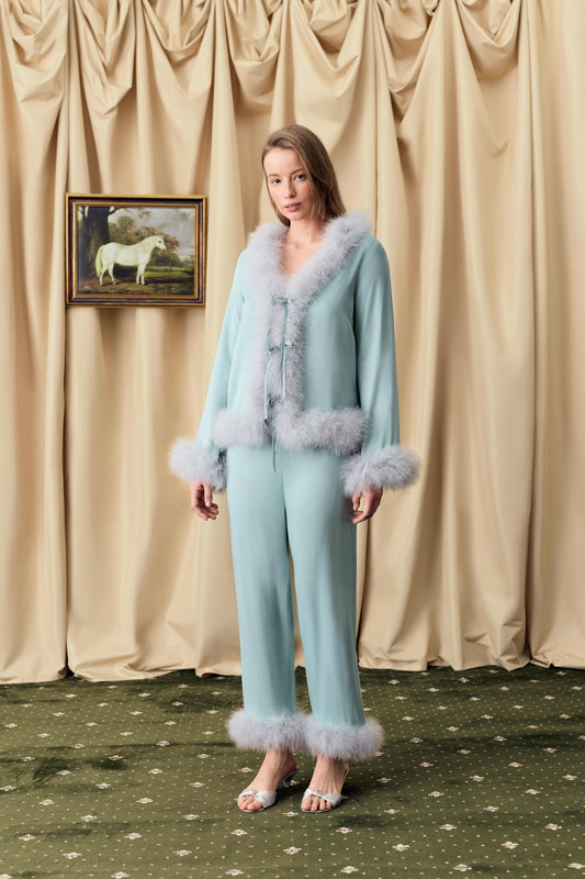 Піжамний комплект The Bow зі знімним пір’ям у зеленомуЗвичайна ціна ₴13,800.00 UAHЗвичайна цінаЦіна за одиницю / perЦіна розпродажу ₴13,800.00 UAH -