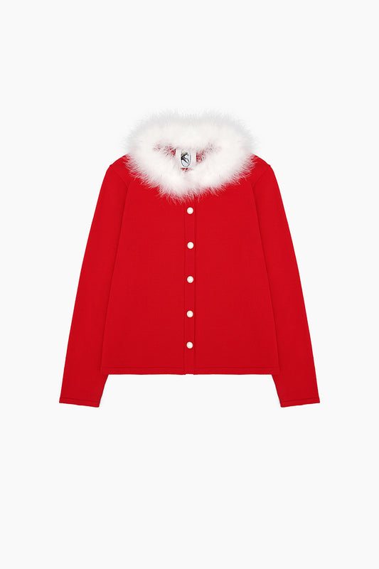 • Кардиган Miss Kitty з довгим рукавом зі знімним пір'ям у червоному