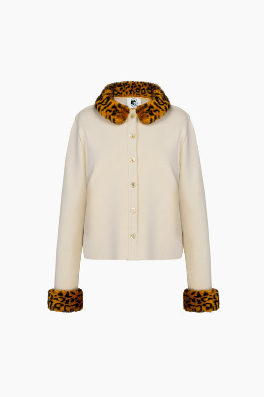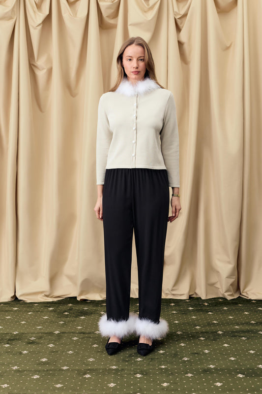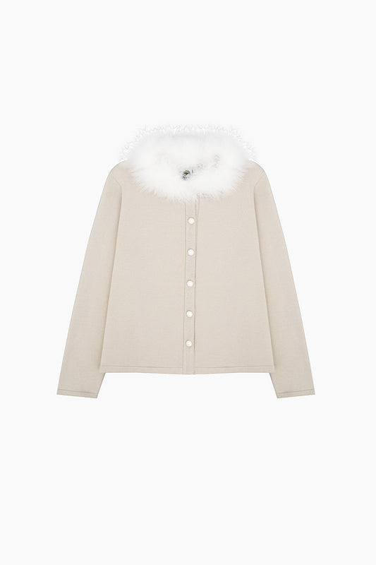 • Кардиган Miss Kitty з довгим рукавом зі знімним пір'ям у бежевому