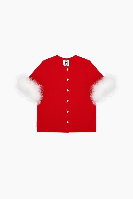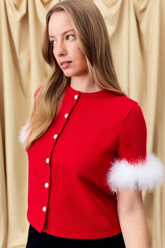• Кардиган Miss Kitty з коротким рукавом зі знімним пір'ям у червоному