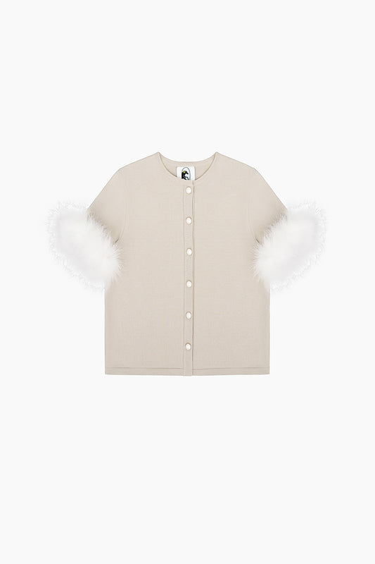 • Кардиган Miss Kitty з коротким рукавом зі знімним пір'ям у бежевому