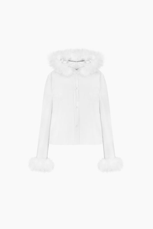 • В'язаний кардиган з капюшоном Kylie зі знімним пір'ям у білому