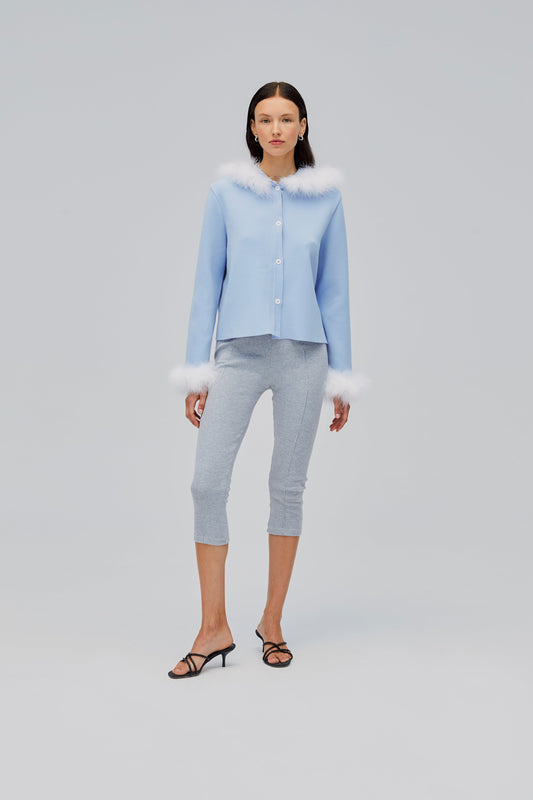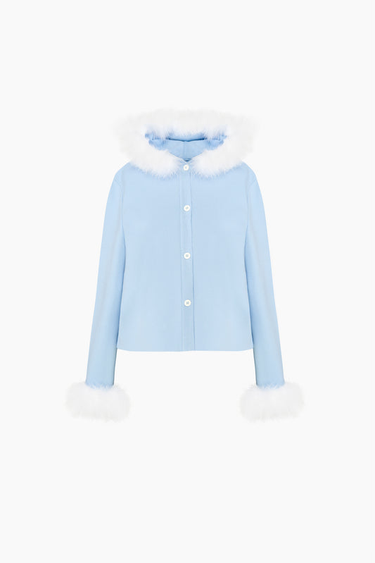 • В'язаний кардиган з капюшоном Kylie зі знімним пір'ям у блакитному